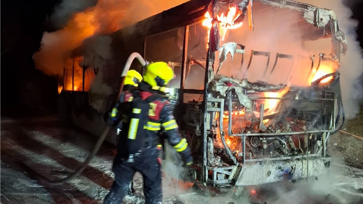 Z fotografií, které hasiči zveřejnili, je patrné, že oheň autobus zcela zničil. Příčinu požáru zjišťuje vyšetřovatel hasičů.