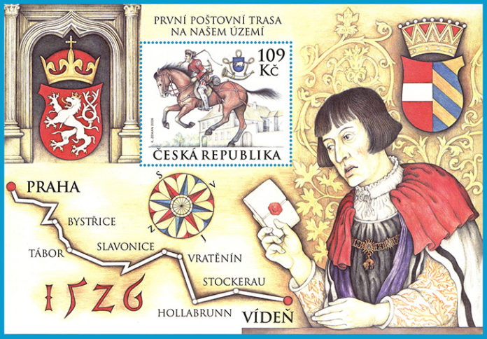 Česká pošta představuje příležitostný poštovní aršík První poštovní trať v Čechách. Autorem výtvarného návrhu je Karel Zeman a cena známka je 109 korun.