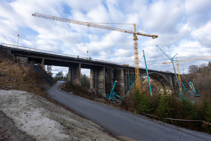 Rekonstrukci nejstaršího dálničního mostu v zemi má na starosti sdružení firem Strabag a Pragoprojekt, most opravuje za 965 milionů korun bez DPH. Práce začaly v červenci 2023, s uvedením do provozu se počítá v první polovině roku 2027. Dělníci musejí nejdřív odstranit nosnou konstrukci až po historický oblouk, který zůstane zachován a čeká ho oprava. Na stavbě, která pokračuje i v zimě, pracuje denně až 50 dělníků.